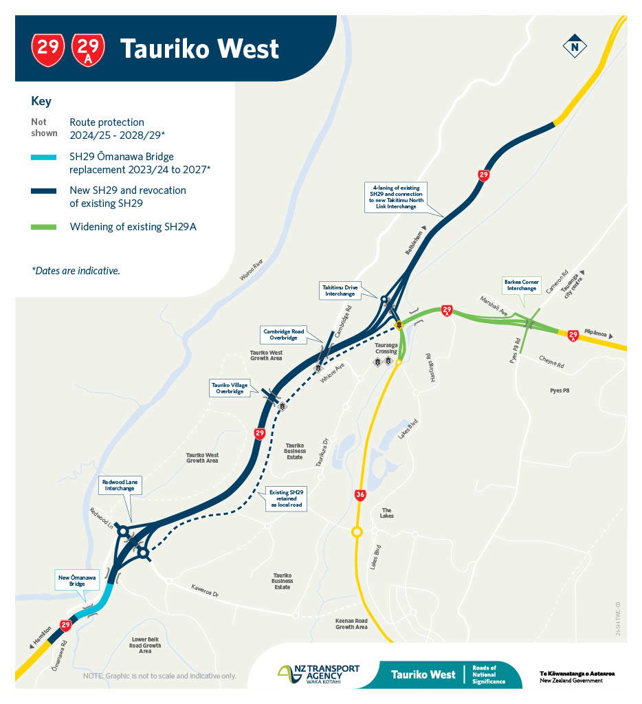 Transport links to Tauriko Business Estate, Tauranga Crossing, and the wider city are already being delivered through the SH29 Tauriko Enabling Works project.